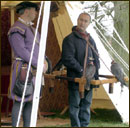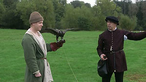 Our uniqueness as historical falconers has led to many an interesting film job. We are particularly useful to historical documentary makers who need falconers that possess the right knowledge and all the correct props. That's us! Most of the time we are required to demonstrate flying and hunting either as a background piece or as part of a larger staged scene, we are very experienced and confident talking to camera and can always assist camera crew with achieving the best possible shots. However sometimes it is only the birds that are required filmed in flight or to be handled by an actor. Whatever your angle we are pretty sure we can deliver the goods as we have a wealth of experience in this field.